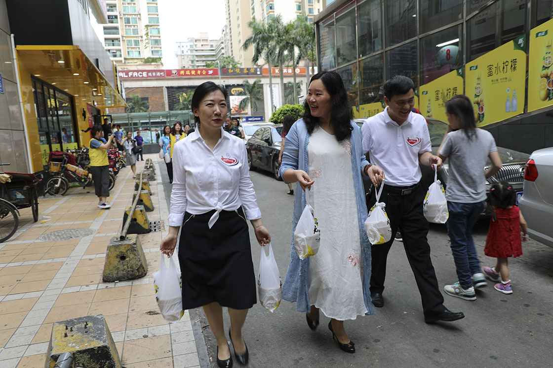 城市的整洁与美丽离不开环卫工人的汗水和付出,5月19日下午,由市城管和执法局指导,市关爱办、美丽深圳公益基金会、真功夫、深圳晚报联合举办的“关爱环卫工人·爱心待餐”活动在福田区“真功夫”福民店正式启动。洁亚环保总经理朱晓芬作为“暖饭派送大使”,亲自为到场的环卫工人们送上了鲜花、暖饭暖菜,并步行至水围广场为现场作业的环卫工人送去一份“暖心餐”。通过此次一碗饭的温暖接力活动,呼吁为环卫工人捐赠一碗暖饭。