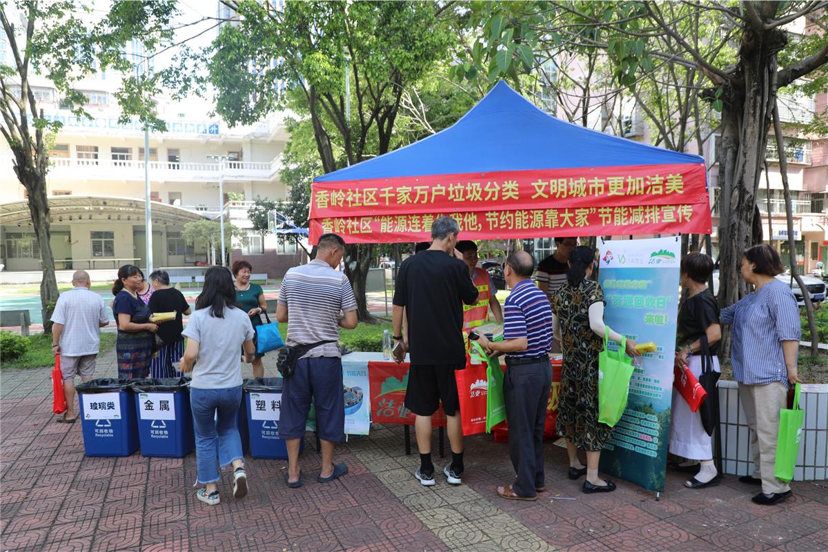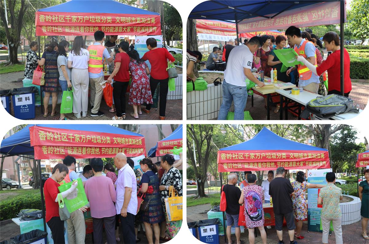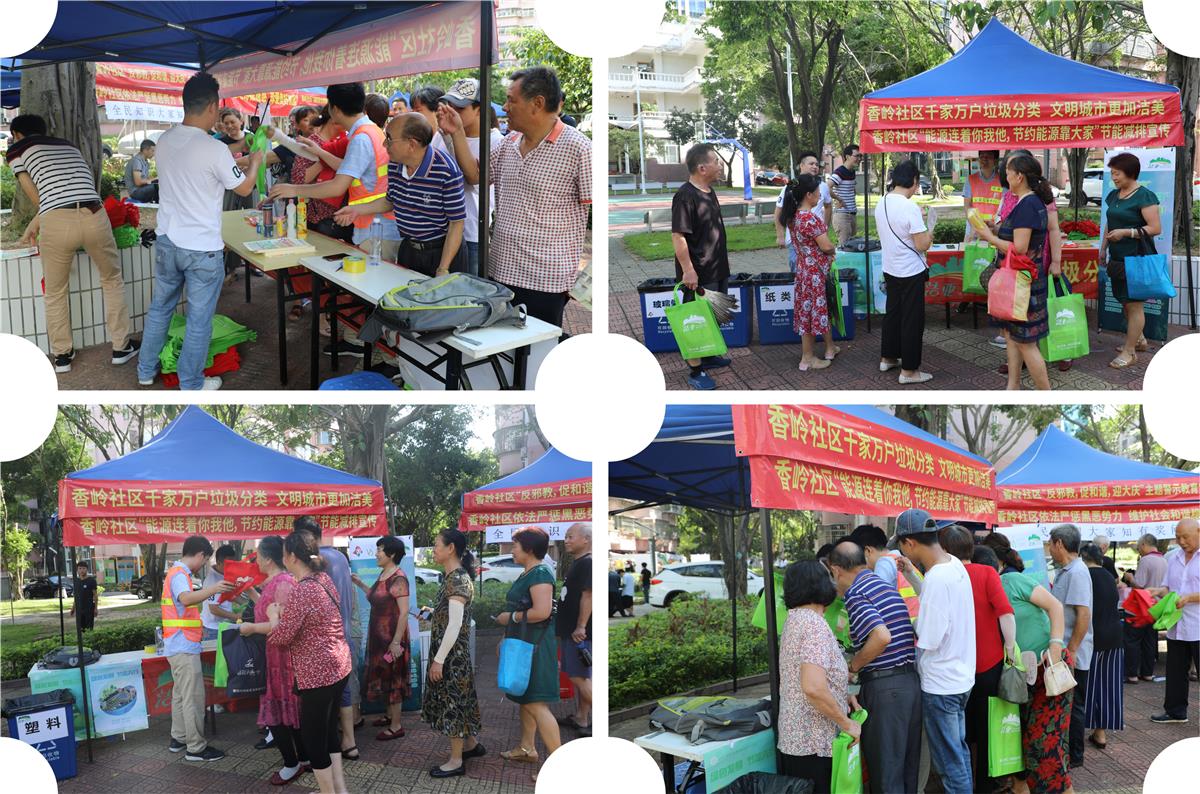 6月20日下午,由香岭社区举办的小区居民宣传月活动在竹子林竹盛花园小区展开,洁亚环保专门设立了垃圾分类知识宣传展位,向小区居民全面介绍和普及垃圾分类知识,号召小区居民养成垃圾分类的习惯,全民行动起来,让我们的生活环境变得更整洁、更优美。活动得到了小区居民的积极支持,纷纷前来咨询垃圾分类知识。