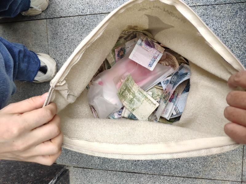 当日清晨,洁亚环保光明清扫项目保洁员谭秀清在光明广场做日常保洁工作时无意中发现路边躺着一个鼓鼓的包,捡起来一打开,把谭秀清吓了一跳,里面厚厚的一叠百元大钞,还有一些零钱,共计1万余元现金,并且没有任何证件和联系方式。很有可能是附近商家早上进货时掉下的钱包。