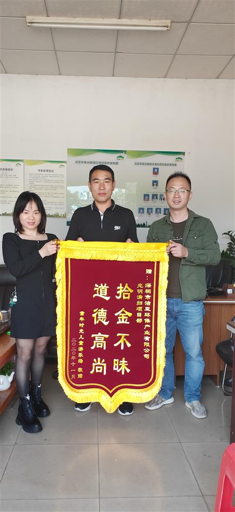 “谢谢谭大姐!这笔钱要丢了我真是该愁死了!”拾金不昧是中华民族的传统美德,10月29日,光明街道的一位清洁工以拾金不昧的宝贵品质造就这样的暖心一幕。