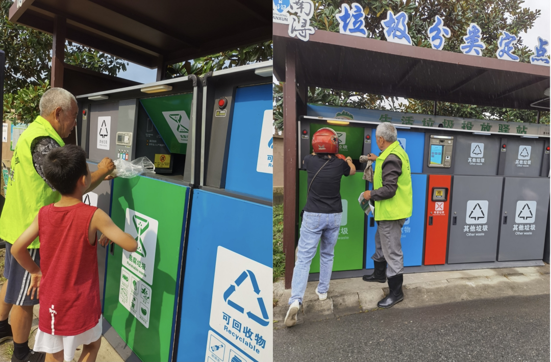 南浔区双林镇洁亚环保的垃圾分类督导员不辞劳苦地做好垃圾的分拣和监督,向居民宣传垃圾分类的知识。长假7天,洁亚环保垃圾分类督导员每天依旧会准时值守在垃圾分类集中投放点,检查居民送来的垃圾是否按要求分好类,并引导居民正确投放至不同类别的垃圾桶里。